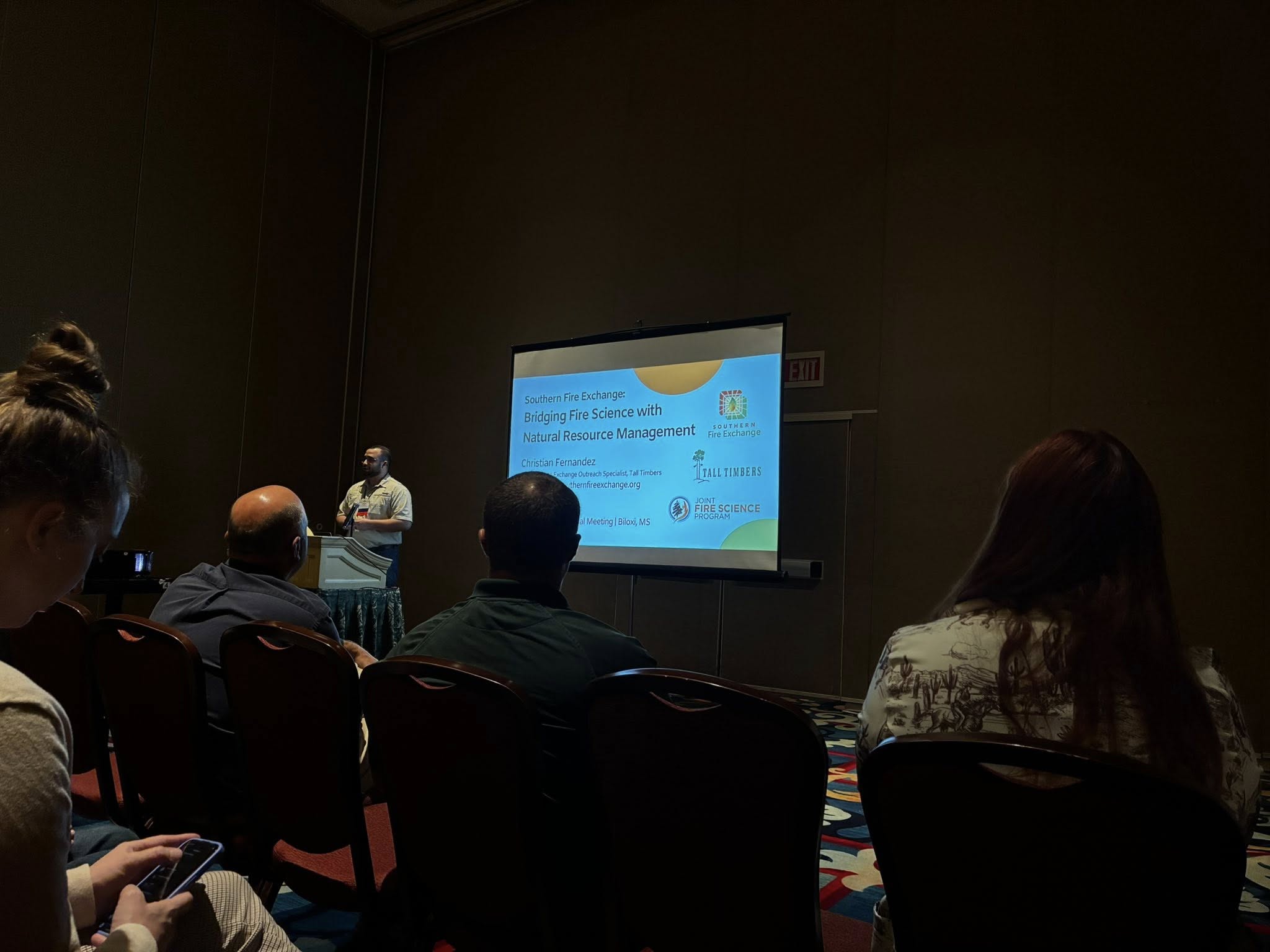 | Christian Fernandez, Southern Fire Exchange outreach specialist, presents on relevant programs and products from his organization to an audience of wildlife professionals at the Southeastern Association of Fish and Wildlife Agencies 79th Annual Meeting in Biloxi, MS. Credit: Christian Fernandez |